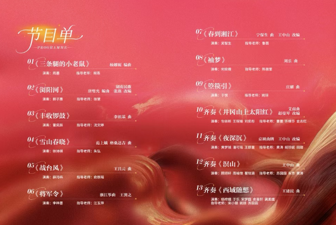 音乐会过半,多首齐奏曲目接连登场,将现场氛围推向顶峰。来自松江区教育学院附属实验学校的包依昕、来自育才初级中学王琛瑜、来自徐教院附中南校的刘奕彤三位同学合作演绎《井冈山上太阳红》,这首由艾南作曲、赵曼琴改编的作品,以江西《采茶谣》为原型,爽朗明快的音调与热烈欢快的旋律,三位演奏者的默契配合离不开指导老师:曹蕾、许维莎、金志红的共同指导。